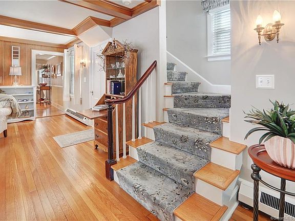 Picturesque Circa 1930's Vintage Colonial with so much charm Loaded with updates & move-in ready Located on a dead end street close to shopping & highways. Enter in to a beautiful Living room with gleaming hardwood floors, wood ceiling beams & a granite fireplace with built in bookcases. The professional painting in this entire home is impeccable Off the living room is a sunroom/den with a built-in seating sofa area & built in bookcases. There is a tiled 1/2 bath on the main floor for your guests. All Harvey replacement windows throughout house. The remodeled Tuscan style kitchen with granite island, beautiful cabinetry, granite countertops, tumbled tile backsplash, Professional series Frigidaire & GE profile series stainless appliances including double ovens. The kitchen door leads you out to a large private patio with pavers. The 3 bedrooms are all upstairs with great closet space in all 3 rooms plus the hallway. There is a pull-down staircase for more storage in the attic. Hardwood floors throughout All custom Hunter Douglas blinds throughout house The mechanicals are all recently updated with a new furnace, new oil tank & an automatic Generac Generator fired by propane. You will fall in love with this immaculate one-family owned mint condition home