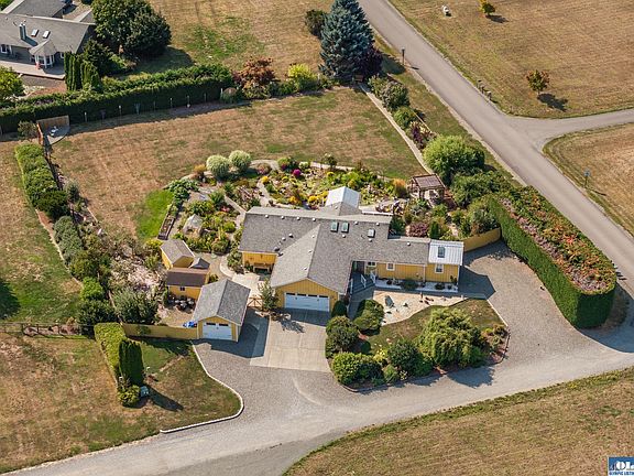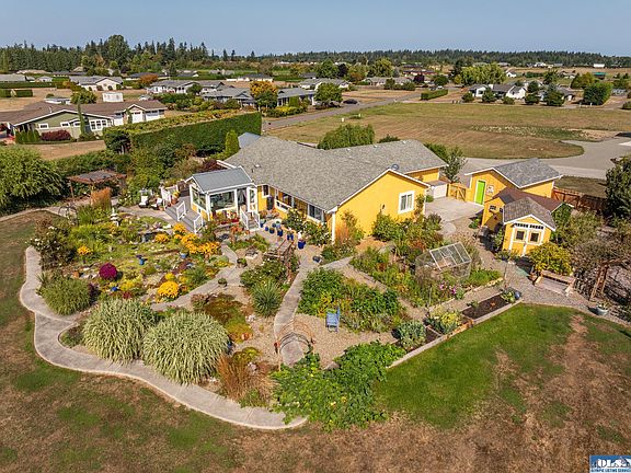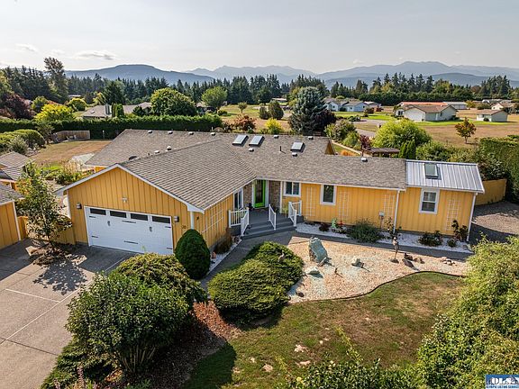 Completely remodeled mountain view home with a private fenced in English garden that bursts with color! Situated in one of the great neighborhoods of Sequim on a quiet dead end street, this charming home has been lovingly updated and cared for inside and out. Inside you'll find a cozy living room area w/LVP flooring, electric f/p, crown molding, and big windows and skylights bringing the natural light inside. Off of the living room is a 3-season sunroom with views to what looks like your own lush arboretum. The new kitchen has it all - large Quartz Island, new appliances, tile backsplash, induction stove/range, tile floors and custom lighting. The kitchen is gorgeous and has a door out to a private trex deck and automatic awning to sit and enjoy the mountains and beautiful garden! The newly expanded Primary BR offers Swedish plank floors, a spa-like bathroom w/2 pedestal sinks w/gorgeous faucets, heated towel rack, radiant floor heat, bidet, and beautiful tile shower w/rain shower head and body sprays. The new walk-in closet is as big as some bedrooms and will accommodate anyone's wardrobe. Two more bedrooms plus a 2nd full bathroom w/new tile floor, heated towel rack, pedestal sink, beautiful tile backsplash and tube light. Plenty of room for vehicles and hobbies w/2 car attached garage, another detached garage, tool shed, tractor shed and potting shed. RV parking area on west side of home. There's a greenhouse plus an orchard area, 2 beautiful gazebos, raised beds, 20 bird houses, a small pond and a carefully planned concrete walkway to walk or roll along to take it all in. The garden has to be seen in person to truly appreciate - it is very special. Metal and comp roofs on the structures, water softener, heat pump for efficient heating and cooling and a great Leland Cypress row on the west side for privacy and a proper wind break. A truly stunning property inside and out that bursts with color and pride of ownership.