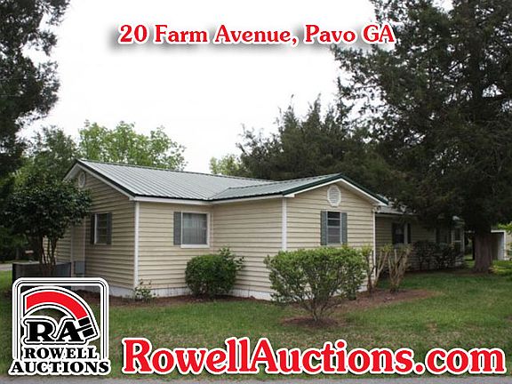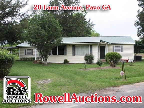 Estate Auction: Excellent 4 Bedroom/2 Bathroom Home ***Price listed is just a placeholder*** Jun 04, 2015 - 4:00 PM Eastern Randall Cooper Estate 20 Farm Avenue Pavo, GA 31778 Online Only Auction 4 Bedroom/2 Bathroom House with Carport Located on 0.34 ± Acre Corner Lot Just Off GA Hwy 122 Convenient to Thomasville, Quitman & Moultrie City Water For More Information Call Mark Manley at 229-891-1377 MManley@RowellAuctions.com or Forrest Horne at 229-225-6854 FHorne@RowellAuctions.com Rowell Auctions, Inc. 800-323-8388 RowellAuctions.com GAL AU-C002594 http://rowellauctions.com/index.php?ap=1&pid=43258