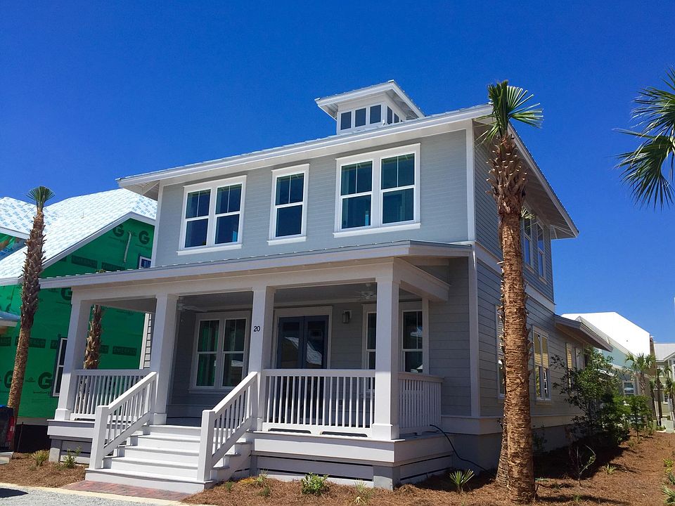The new Montego plan under construction. Your modern Beach Cottage awaits. This home will combine quartz countertops, white and gray shaker panel cabinets, and wide plank rustic wood look porcelain tile floors. The Town of Prominence is located on HWY 30A between Seagrove Beach and Alys Beach, next to WaterSound Beach. Residents will enjoy easy access to a beautiful Town Center, Resort style pools, Fitness Center and Private Shuttle Service to the beaches of 30A. ''The Hub",'' the community's town center includes restaurants, shops, and an amphitheater with covered event pavilion, a cinema screen for movies, as well as a stage for concerts and events.