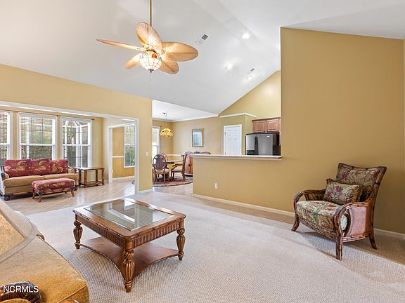 REDUCED!! This lovely open and airy 3 bedroom, 2 bath well-maintained townhome has over 2000 square feet, with a wooded view in the back and a view of the pond in the front, all in the sought after community of The Farm at Brunswick County. The living room, dining room, kitchen and Carolina room provide an open room concept with vaulted ceilings in the kitchen and living room. Directly off the living room, the owner's suite boasts a vaulted ceiling, walk-in-closet, ensuite bath with garden tub, walk-in-shower, separate lavatory and linen closet. On the other side of the main floor, you will find two guest bedrooms and the second bath.