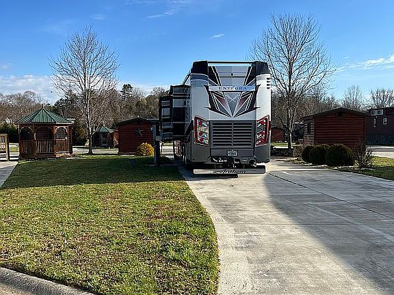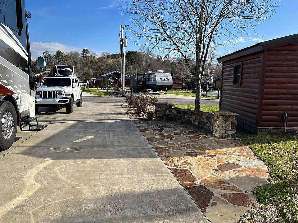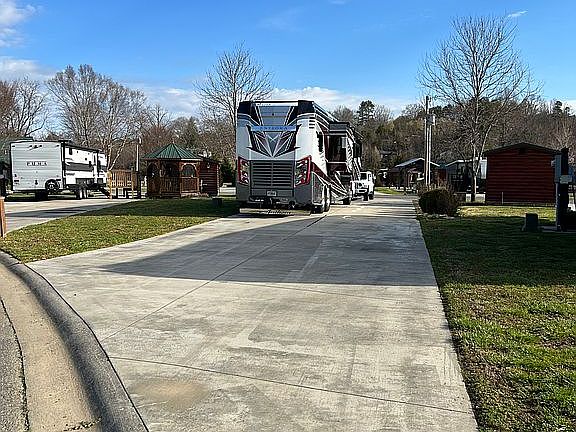 Large Pull thru lot in Crossing Creeks RV Resort. Gated community with tennis and pickle ball courts, swimming pool, exercise room and sauna. Lot has shed and flagstone patio. Plenty space for pavilion and cabin and large class a RV.