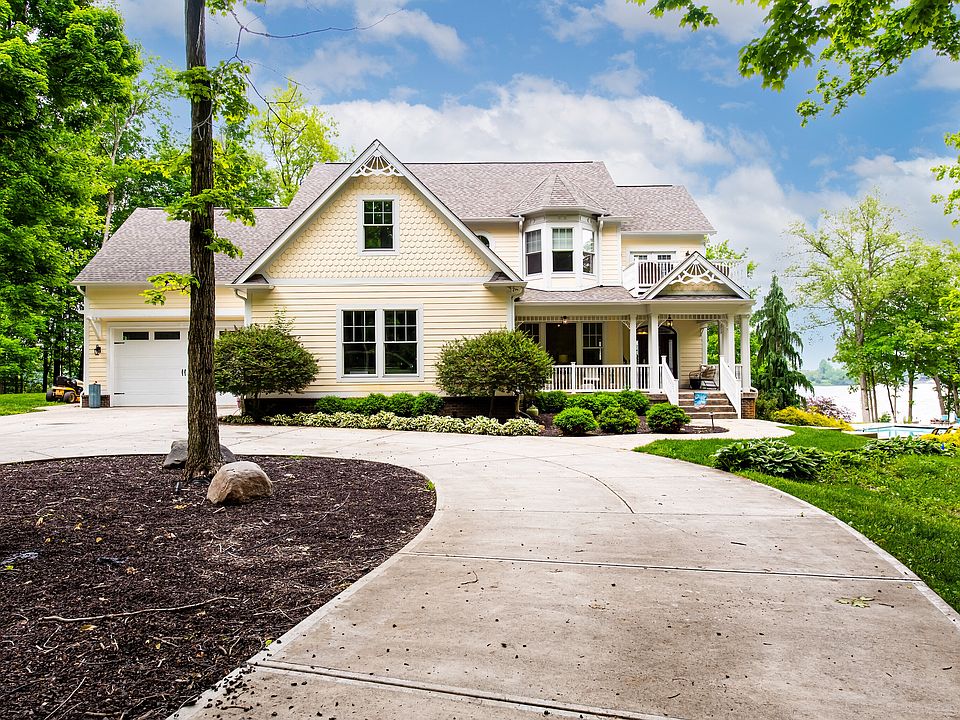 Welcome to this gorgeous lakefront home on Morse Reservoir that has it all! Built in 2014, this property sits on 2.1 wooded acres and is perfect for entertaining with the beautiful views, privacy, and all of the amazing features inside and outdoors! There is plenty of space to host family and friends with the in-law quarters upstairs that includes a kitchen, bedroom, bath, sitting area, large unfinished attic space, and private deck. The main level has an open concept that includes the kitchen with cherry cabinets and granite countertops, large island, working pantry, great room, breakfast room, guest bath, with great views of the water. To the left of the front foyer is the large office and off of the great room is the screened porch with 10 ft accordion style doors with access to the multiple decks. The owners suite is located on the main level as well, with a walk thru closet, and is connected to the custom laundry room with dog washing station. The walkout basement will be your indoor gathering place with a theater room, billiards room/game room, and bar area. There are two additional bedrooms with a jack and jill bathroom that include individual vanities, plus a guest bathroom on this level. Also, additional storage space that is unfinished. You can access the covered patio from down here along with the saltwater pool and firepit area. The brick path takes you down to over 600 ft of shoreline, including the main body and a protected cove for the three-bay covered dock that has a table for eating and additional storage, which stays. The house has a whole house generator, a 500 gallon underground propane tank, the capability for a pulley system in the garage to raise your boat and is a smart home...to name a few features. All additional features can be found in supplements. All appliances in home on all levels, including washer/dryer, wall mount tv's, and grill on deck stay.