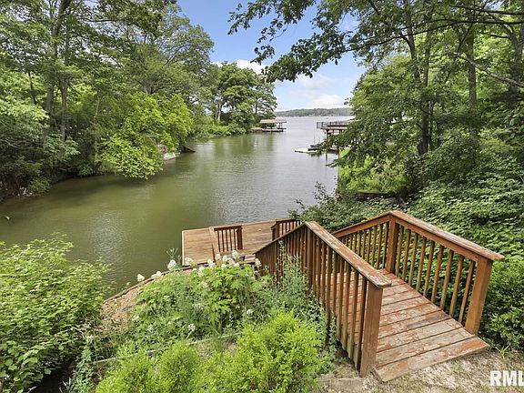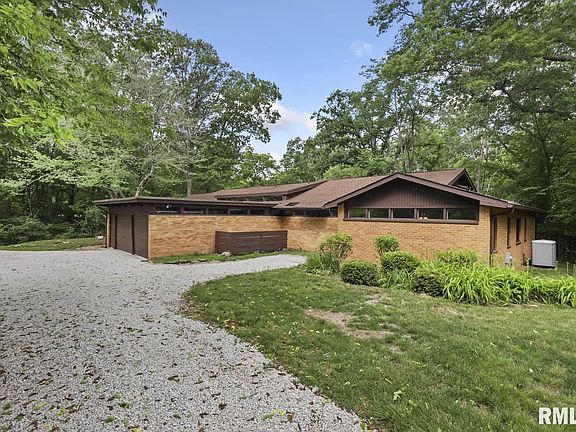 Hidden Gem! Gorgeous home on almost two acres on Lake Springfield. This Frank Lloyd Wright-style home boasts three spacious bedrooms, spectacular views and lots of room to enjoy your time at the lake. Stunning hardwood in living areas and new tile in kitchen. Almost 2 tree-lined acres to call your own. New roof over garage.