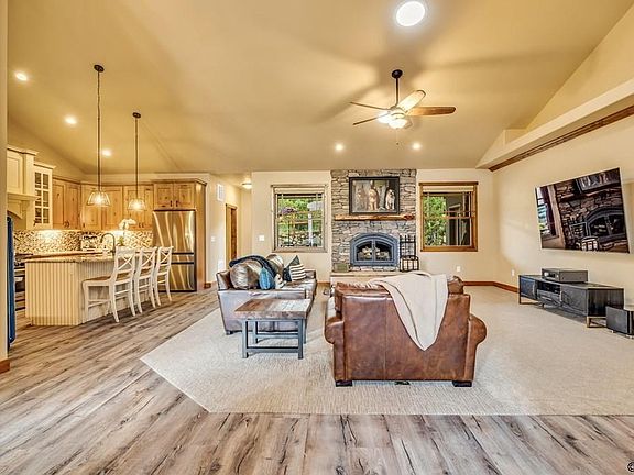 Welcome to your dream home nestled in the beauty of nature, where every morning greets you with breathtaking views of the mountains, & the city below! This home has all new carpet & LED lights throughout, new elegant light fixtures, a brand new washer/dryer set.As you step into the foyer, you are immediately captivated by the natural light, cathedral ceilings, & an open-concept layout that connects the living, dining, & kitchen areas. The kitchen boasts all stainless steel appliances, a brand new under counter microwave, smart fridge, & granite countertops! Next to the kitchen, get ready to cozy up in the spacious living room with a beautiful stone wood-burning fireplace. The back patio, has meticulously landscaped yard, with brand NEW fencing, a water feauture, & built in fire pit. The master suite is its own sanctuary of relaxation, with beautiful views of the mountains. The ensuite bathroom is a luxurious retreat, with dual vanities, a massive walk in closet, & a walk in shower with new glass.There are two additional spacious bedrooms on the other side of the home, with a huge custom full bath between. A bonus office is also situated close to the bedrooms. A few more features to note is the oversized 3 car garage, the central vacuum system, sprinkler system, & paid off SOLAR PANELS! $10/month power bill. Located in the highly desired Dawson Ranch, this paradise of a home, where tranquility, beauty, & modern luxury meets, is awaiting you! Schedule today!