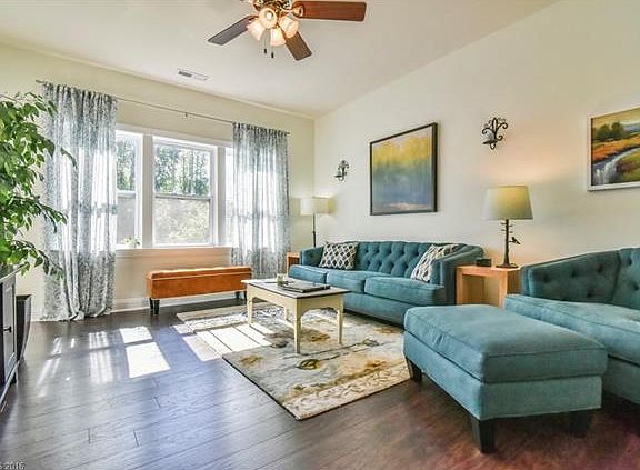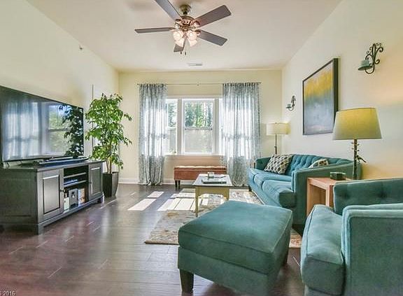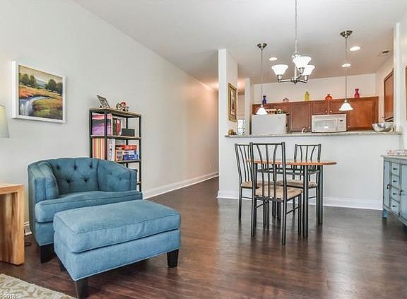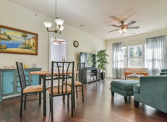 One of the rare all one story units! Main level, no steps! True 3 bedroom/2 bath split bedroom plan with open concept kitchen/living/dining areas with lg. breakfast bar, Maple kitchen cabs/bath vanities, fresh interior paint throughout, new laminate wood floors in all main areas/hallways, walk-in closet. Cvd.front/rear decks overlooking green space with beautiful wooded surroundings. Unit close to pool, fitness center and clubhouse. Paved parking space at front. Convenient location, immaculate unit!