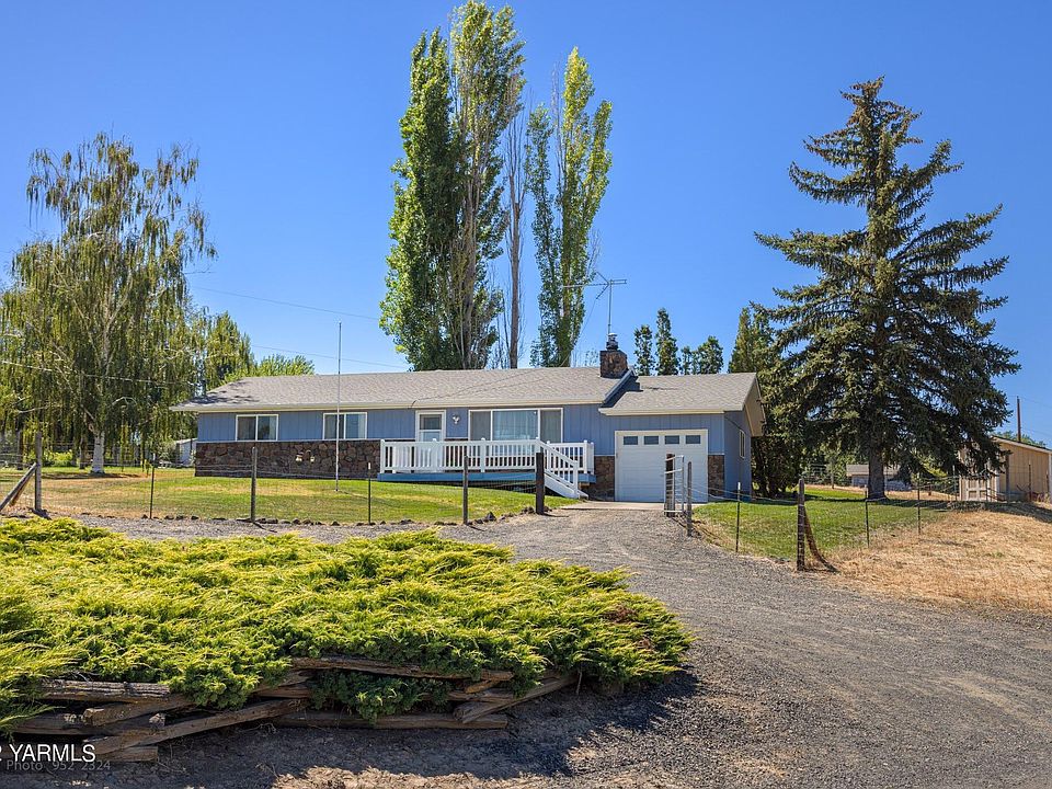 Selah country rambler with views all the way to the Selah Creek Bridge. Enjoy the fresh air on a quiet evening from the deck of this single level home on the corner of Speyers Rd and Frosty Lane. Cozy up in the living room during cold winter days with the woodstove insert. The 3bd, 1.5ba and 1319SF are plenty to get you started or for downsizing. There are 2 pastures outside for a few animals or large areas to play. Attached 1-car garage has room for a workbench and some storage. Convenient laundry room on the back of the house with exit to the yard. Come tour this home today!