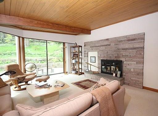 Spectacular panoramic ocean views from terraced yard grace this custom built contemporary home. Pretty stone fireplace in living room with wall of windows and easy access to deck and backyard. Beautiful woodwork featuring teak built ins and mahogany doors highlight this special home. Sunny kitchen and dining room with bay window and water views. Three bedrooms, one full and one half bathroom on main level. Fantastic family room with second fireplace, fourth bedroom and second full bathroom on lower level. Enjoy the convenience of your two car garage and central air conditioning. Gardeners will appreciate the many varieties that bloom in the yard while relaxing to sounds and sights of the ocean.