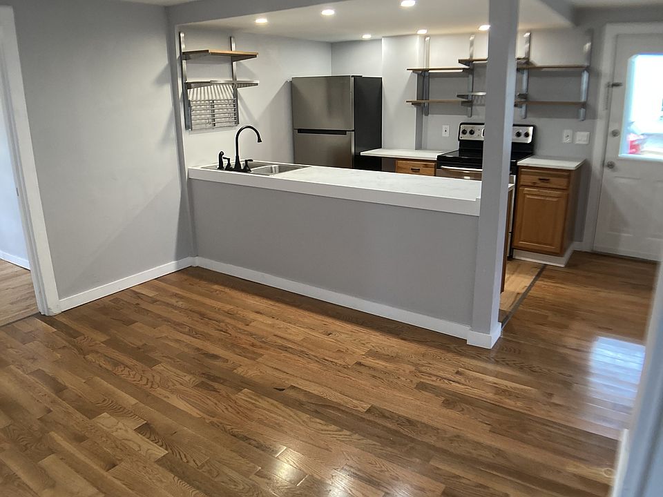 Beautifully renovated 2-bedroom apartment in The Patch, Turners Falls. Ground floor unit. Open concept kitchen/living room, 2 bedrooms, 1 bath. New hardwood floors, new lighting throughout apartment, freshly painted. New kitchen cabinetry and refrigerator. Heating and cooling with brand new air source heat pump. Building shared with four other apartments. One on-site parking space; plenty of street parking for guests or additional cars. Friendly neighborhood near bike path and walkable to downtown Turners Falls. Rent is $1,495/month; first, last and security required. Rent includes water, garbage removal, recycling and snow removal. Tenants pay electric heating and cooling. Sorry, no pets at this unit. Friendly and responsive landlords. Please inquire for details.