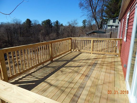 Gorgeous, fully renovated 2 bedroom ranch home set back off the street on a private 1/2 acre lot backed by the Railtrail. Hardwood floors, fireplace, built-ins, front porch and 3 bay garage. New kitchen and bath along with new windows. Washer and dryer and all appliances installed. Granite counters, new electric service, large deck off kitchen. Wood floors and tiled floors in kitchen. Gas heat. Move in ready! Large front and rear yards. Fios ready. Large closets.