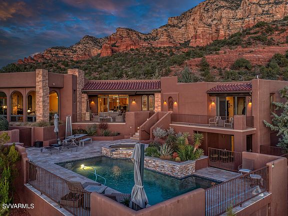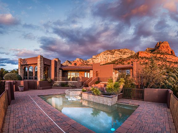 A Sanctuary for the Senses! This gem in The Estates at North Slopes was designed by Sherri Mleynek and encourages the ideal Sedona Lifestyle. Unwind with friends amongst luxurious resort-style amenities, breathtaking views, food, wine, music, and private pool. This elegant home boasts 5,371 sqft that seamlessly provides ample space and intimacy all at the same time. Main level living is focused around the Dacor appointed gourmet chef's kitchen which is complemented by a one-of-a-kind custom walk-in wine cellar holding 1,100+ bottles of wine. The dining room opens up to a generous covered patio with a built-in barbecue overlooking the expansive pool deck. You'll enjoy both of the ''Golden Hours'' at Sunrise & Sunset with outstanding views in every direction. With outdoor living just as... ...elaborate at the home itself, there is no shortage of places to enjoy the serenity! This architectural showpiece is one you'll have to see to fully appreciate - photos don't do it justice. See documents for List of Features. Best location in West Sedona - minutes to abundant hiking/biking trails, Seven Canyons Golf Club, and all of Sedona's amenities. Close proximity to EVERYTHING allows you to take advantage of the unique outdoor activities that make Sedona one of the most beautiful places to live. The Estates at North Slopes just facilitated building a fence along the neighborhood with a walking path down Dry Creek with strategic boulders placed near the road preventing any parking. This path connects you to some of Sedona's most breathtaking trails. Schedule your tour today!