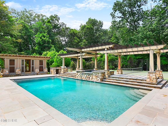 Mid-Country compound built to the highest standards located in a private association. Spectacular setting, this shingle-style manor house has it all. Over 11,000 square feet with 7 en-suite bedrooms including two fabulous master suites. There is wonderful space for today's modern lifestyle. The first floor has spacious formal & informal rooms plus offices, gym & luxe master. Easy access to the outside stone terrace overlooking the verdant lawns, pool, spa, pool house & tennis court. The second level has a sensational master w/cathedral ceiling, FP, spa bath & walk-in closets. The garden level offers a playroom, oversized entertaining room w/wood, stone & walk-in wine cellar. Unparalleled in workmanship, this country retreat offers so much enjoyment for family & friends. Near town/schools.