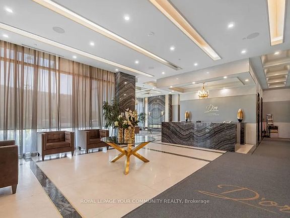 One of the largest 1 BED/1 DEN+ 2 BATHROOM Model This condo presents perfect layout and high ceilings, a gorgeous clear southern view, an open-concept kitchen, stainless steel appliances, and a large balcony. The building is one of the best condos in Thornhill. It offers 24-hour concierge service, a beautiful modern party room, an exercise room, an indoor pool/hot tub, a yoga room, and more. Perfect convenient location within walking distance to Walmart, shopping, groceries, parks. The unit is a one bedroom with one den and two bathrooms. It has a perfect layout and high ceilings. The unit has a clear southern view. The kitchen is open-concept with stainless steel appliances. The unit has a large balcony. The building offers 24-hour concierge service. The building is located within walking distance to various amenities. Prestigious Beverly Glen Neighborhood. Seconds away from Thornhill Green playground and trail system. Walking distance to City PlayhouseTheater and Promenade Shopping Centre. D'or Condominiums are brand new. Extras included: new pool, gym, Alfresco Dining area, hot tub, sun deck, party room,Yoga area.
