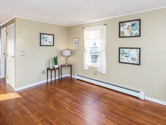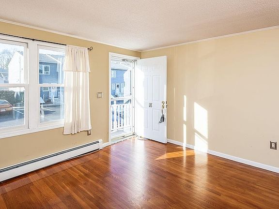 Location is everything! Schedule your appointment today for this bright, sunny end unit townhome in a great location, within minutes to commuter rail, Sturdy Hospital and more. Convenient to shopping, town hall and several major highways, this location can't be beat. First floor features living room with hardwood floors, half bath with large closet, open kitchen with slider to deck overlooking private, wooded back yard. Second floor offers 2 bedrooms and full bathroom. Finished space in basement for additional possibilities as an office, den or storage. Unfinished area for workshop, and walk out to level, wooded back yard. Showings begin immediately. Call now!