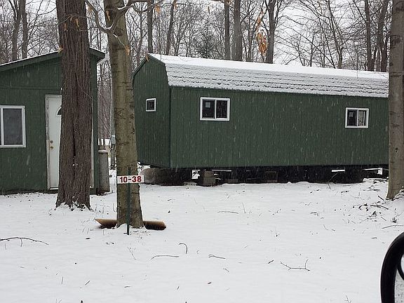 This manufactured / Tiny Home is located in a beautiful family campsite community that's the home and land is owed by you. Water and electricity are included in your dues. 200 day occupancy (pre year) of your choice. Open year round. This unit sits on 4 lots with 2 full bedrooms with 2 lofts. This unit sleeps 10 people. 24 Hour Gated Security Office staffed by professionally trained personnel as well as 24 hour roving patrol vehicles. Recreation Hall/Activity Center & Pavilion. Heated outdoor pool staffed by Certified Lifeguards. Comfort Stations conveniently located within the community Well water and Electrical service are provided with your association dues. The annual taxes are approximately $500, please disregard the Zillow calculation it is incorrect. Miniature golf, tennis, basketball, volleyball and bocce court, horseshoe pit and softball field. Picnic tables. Use of your recreational vehicles, travel trailers, ATV's, golf carts.