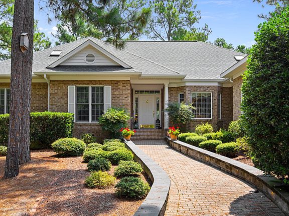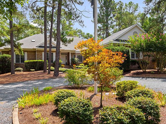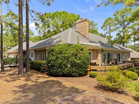Located in Pinewild CC, this lovely, beautifully maintained one level home is situated on just over 1 acre overlooking #10 fairway of Magnolia Course. Designed by Suzy Morgan. See through gas fireplace, between family room and living room. Triple sliders in Living Room, Family Room and Master Bedroom out to huge deck with seating overlooking #10 fairway. Master bedroom has two walk-in closets. Master bath recently renovated with double vanities, large jet shower and walk-in tub. Two car garage with extra golf cart bay. Unique laundry room with full bath. Workshop area in garage. Termite Bond through Aberdeen Exterminators. HVAC maintenance agreement through Four Seasons.550 Sq FT deck has bench seating with cushions to be left. Retractable awning on deck just outside Family Room.
