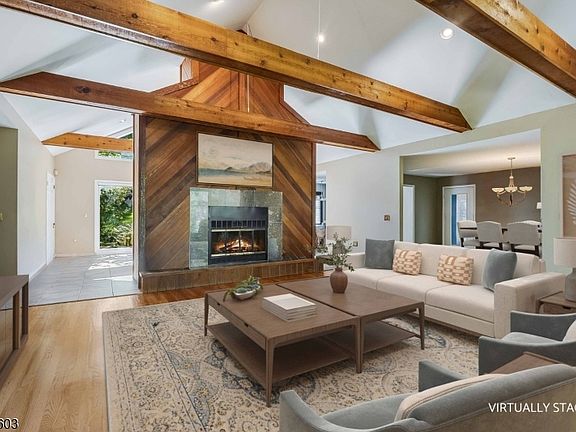 Serene ranch-style retreat with separate in-law suite, ideally situated on a quiet, private cul-de-sac in desirable Mendham Township. Step into the grand foyer, where soaring ceilings, exposed wood beams, and floor-to-ceiling windows flood the space with natural light. Designed for both tranquility and functionality, this 4-bed ranch offers the ease of single-level living with luxurious touches throughout. Enjoy the gourmet kitchen outfitted with high-end stainless steel appliances, flowing seamlessly into a dramatic dining room, perfect for hosting gatherings. Just beyond, a charming side porch offers peaceful views of the lush, tree-lined backyard. At the heart of the home is the living room, featuring striking wood beams, oversized windows, and a cozy fireplace, making it the perfect space to relax or entertain. The main level includes three spacious bedrooms with a serene primary suite and spa-inspired bath. Downstairs, the walk-out lower level offers exceptional versatility with a large billiards room, home gym, private office, fourth bedroom and a fully equipped in-law suite with a kitchenette and its own entrance. Step outside to enjoy the beautifully landscaped grounds, complete with a bluestone patio and a sparkling pool surrounded by nature creating a true resort-like atmosphere in your own backyard. Located on the east side of town with direct access to Patriot's Path, this home combines convenient one-floor living, a peaceful setting, and a premier location.