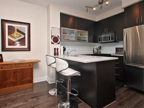 Beautiful High Park Condo With Amazing South Views. Well Laid Out Floor Plan With Combined Living/Dining, Open Concept Kitchen With Upgraded Stainless Steel Appliances, Backsplash And Breakfast Bar. Hand Scraped Solid Walnut Hardwood. The Den Can Be Used As A Second Bedroom, Master Has A Walk-Out To A Private Balcony. Steps To Subway, Restaurants And Many More Ammenities 1 year
