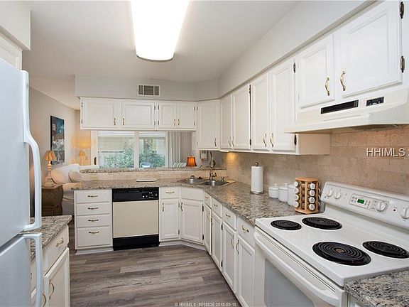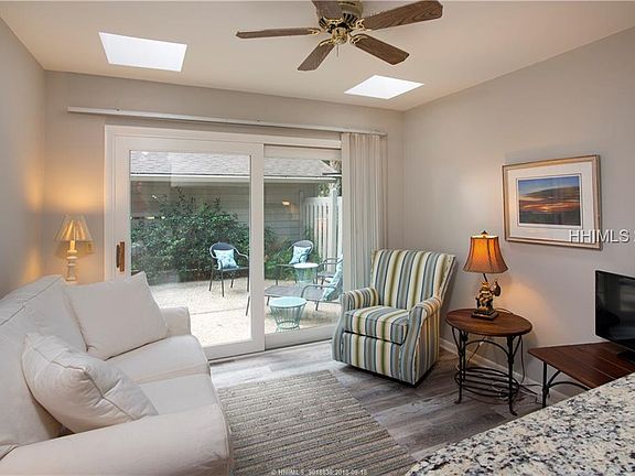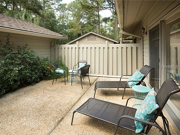 Peaceful wooded to golf views from this charming 3 bedroom 2.5 bathroom villa with 1 car carport and large storage shed. Enjoy communing with nature or friends in the front courtyard patio. Granite top kitchen opens to cozy living and eat-in area. Smooth vaulted ceilings in large Living room flow beautifully off dining area and carolina room. Master Suite with private deck and powder room are conveniently located on first floor. Two bedrooms and a full bathroom are located upstairs. You will be delighted by this move-in-ready villa located close to the Sea Pines Main gate and only a short walk to the Sea Pines Country Club.