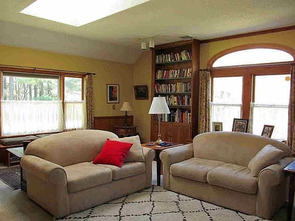 This Contemporary style home has a lovely combination of open spaces enhanced by cathedral ceilings and cozy areas. The great room is flooded by light and warmed up by the zero clearance propane fireplace. One of the two bedrooms on the first floor opens up through sliders to a lovely private deck complete with built in benches. The upstairs loft has soaring ceilings closet and an attached half bath which is directly over the full bath downstairs and large enough to be a full bath. Beautiful property, close proximity to Bard College, Greig Farm and the village of Red Hook. Siding replaced in 2015, attic and crawl re-insulated, partial roof replacement as need newer furnace. Just move in.