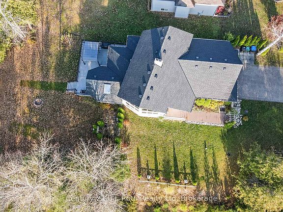 Frontage is 56.70 ft plus the curve (approximately 80 feet). Open the door to a bright sun-filled, elegant custom-built and exclusive designed, year round home. Make it your vacation home with your family or to meet up with friends. 5 Bedrooms, 3 Washrooms 3121 sq.ft of Living Space. Grand space is evident as soon as you walk in. Open and spacious living room with vaulted ceiling and large windows with views of the landscape and sky. Room to accommodate your guests for entertaining in style or just spend your summer days in close proximity to beautiful Woodland Beach. After a day at the beach, return to enjoy time on your back composite deck with built-in gazebo, surrounded by nature. The large yard provides plenty of space for landscaping, perennials and all of your gardening skills. Lower level provides extra room for guests or family or in-law suite. Oversized double garage with shelving at the back provides space for summer toys. Updates include: New shingles with Skylight. New Composite Deck with Gazebo. Make Georgian Bay part of each day you spend here! One of a Kind Architectural Gem. Must See! Property Lot Size: 79.99 ft x 141.90 ft x 6.71 ft x 6.71 ft x 6.71 ft x 6.71 ft x 6.71 ft x 56.70 ft x 165.10 ft.