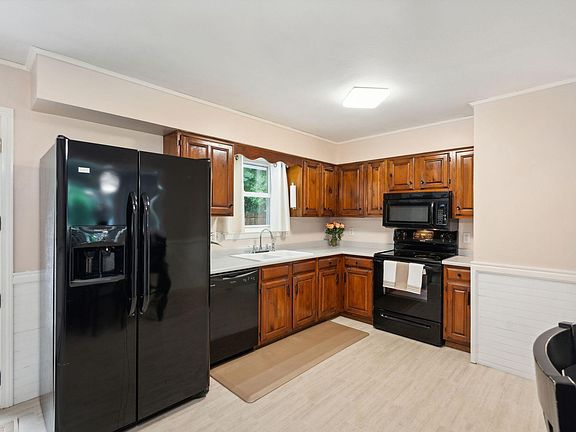Great bones, quiet dead-end neighborhood, and pride of ownership hallmark this charming two-bedroom ranch that has been meticulously cared in the Village of Springvale. A flat fenced-in backyard and well-manicured landscaping festoon the front façade and welcomes you home. Upon entry, you are greeted by a spacious living room with hardwood flooring highlighted by large oversized windows. Unifying its sense of space and maximizing the natural light flow throughout the home, the eat-in kitchen boasts an energy-efficient heat pump system for heating/cooling while effortlessly connecting to the large backdeck - which could be the perfect escape for a cozy reading nook or entertaining space with loved ones. Two large bedrooms with generous closet space and a full bath finish off the first level. Need more space? Make your way downstairs to the partial finished full basement with a half bath - which creates a practical and functional space for a home gym, office, or additional entertaining space. A bonus room, laundry area, and an abundance of built-in storage complete the lower level. The combination of this space adds so much flexibility to the type of living arrangements you can create. Additional features include an attached one-car garage with additional storage above, an expansive fenced-in backyard with a firepit, a large shed, heat pump, and irrigation system - presenting a wonderful opportunity for you to refresh with your own personal style. Within minutes to the local trails, restaurants, parks, hospitals, Springvale Public Library, and a short drive to the Sanford County Club! Make it yours today!