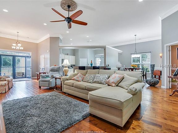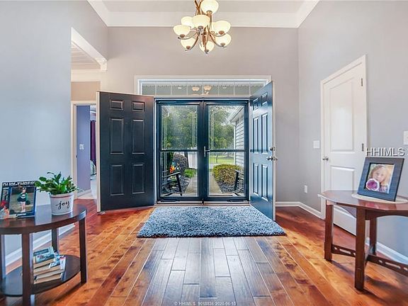 This highly desirable Westwood model in Baynard Park is MOVE-IN READY! Open single story floor plan, with 12 ft ceilings, crown molding, hardwood floors, eat-in kitchen with granite counter tops, tile, SS appliances and upgraded 42" cabinets. Master on main with tray ceiling & luxurious master bath with soaking tub, shower, double vanity & walk-in closet. 2 additional bedrooms & office located on the first floor. The large screened lanai is perfect for entertaining! Upscale community amenities include pool, tennis courts, walking trail to school & much more. Currently zoned for River Ridge Academy and May River High.