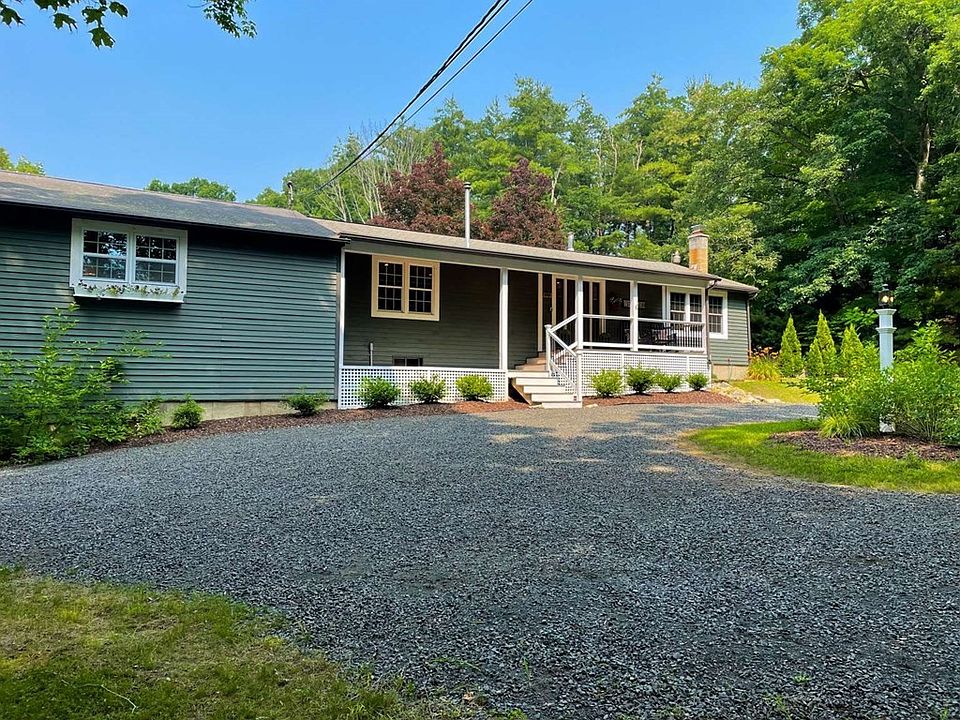 Well maintained ranch-style home situated on a spacious 9-acre lot. The backyard has several mature fruit trees, a chicken coop/shed and plenty of space to entertain, garden, and relax. The front yard has a second, oversized shed, new circular drive, and ample parking below with a large driveway and attached 2-car garage. Inside you will find many updates in this open-concept, turnkey home. Some updates include new kitchen appliances, Quartz countertops, windows, remodeled bathrooms, and a new heating and cooling system installed in 2021. The master bedroom has a walk-in closet, a second closet, and a full bath. Between the master and the other 2 bedrooms is a cozy den with a pellet stove; great as a second living room or home office. Pride of ownership throughout. Don’t miss out. Showings begin on Saturday, July 8th. Seller reserves the right to accept an offer at any time.