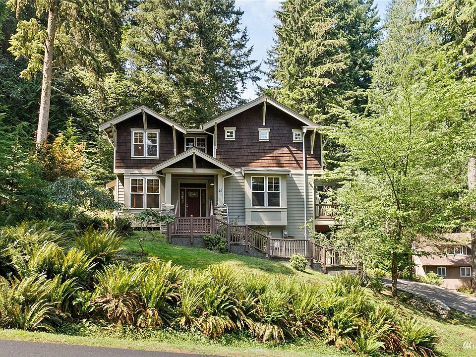 Gorgeous 4BR NW Craftsman home sits on a double lot and features a rare 3 car garage & peek-a-book lake view from the deck. The bright and open main level features a grand entry with two story vaulted ceilings, open rail staircase, beautiful hardwood floors, two living areas each with a gas fireplace, two dining areas, large kitchen w/granite counters & stainless steel appliances and an office w/deck access. Upstairs features 4BR including the huge primary suite w/spa like bath & walk-in closet. Enjoy all the wonderful amenities including an 18-hole Championship golf course, marina on Lake Whatcom, two outdoor swimming pools, fitness center, off-leash dog parks, trails for hiking, tennis/basketball courts, beaches, 24/7 Security and more.
