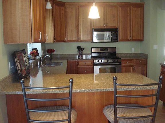 - KIT_DSCRP: Flooring - Hardwood, Countertops - Stone/Granite/Solid, Flooring - Stone/Ceramic Tile, Breakfast Bar / Nook, Dining Area, Stainless Steel Appliances