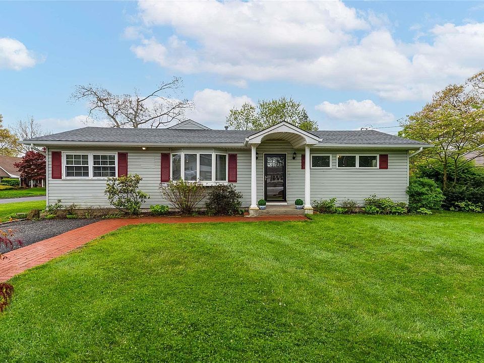 Opportunity awaits! Welcome to this charming three-bedroom, one-bathroom ranch in the Incorporated village of Lake Grove. Conveniently located near shopping, Stony Brook Hospital and Stony Brook University. Upon arrival this home exudes warmth and comfort. With its quaint and intimate atmosphere, this home is perfect for those seeking a peaceful and relaxing retreat. Eat in kitchen offers granite counter tops, stainless steel appliances and easy access to fully fenced in yard. Separate laundry room/storage space adjoining kitchen makes it convenient for everyday tasks. Set on a generous corner parcel with double driveways you will enjoy easy access from one car garage into home. This home is not to be missed!