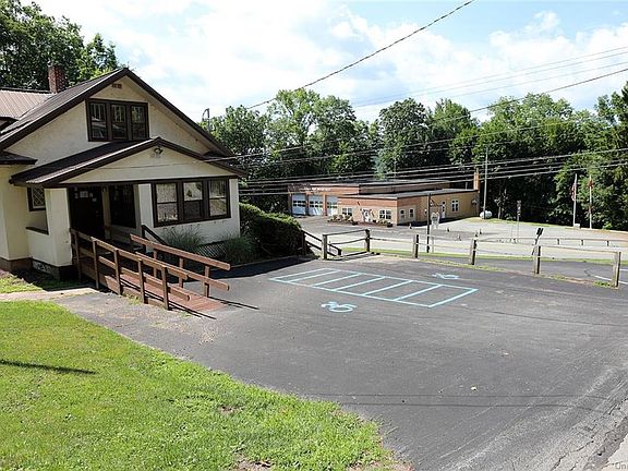 Trendy and coveted Callicoon has a lovely Arts and Crafts home/office for sale. This well-kept building was most recently a dentist's office, but can easily be turned back into a home within walking distance of Main Street. It features a living space (currently waiting room) with brick fireplace, French Doors, gorgeous woodwork, and built-ins. Inside the office, find 3 exam rooms, all with sinks. Would be great for artists' co-op, as there is lots of light and water available. Other sinks in kitchen and throughout. Reception/check-in area has a bar. Kitchen on this level with electric stove, fridge and dishwasher. Lots of storage space and closets. Upstairs, find 3 bedrooms and a half-bath. Several entrances. A little creativity will turn this space back into a home in no time. Metal roof, paved parking lot handles a crowd. Callicoon water and septic. Spectrum High speed internet so work from home! Callicoon Farmers Market on Sundays, Delaware River, shops, eateries, theater.