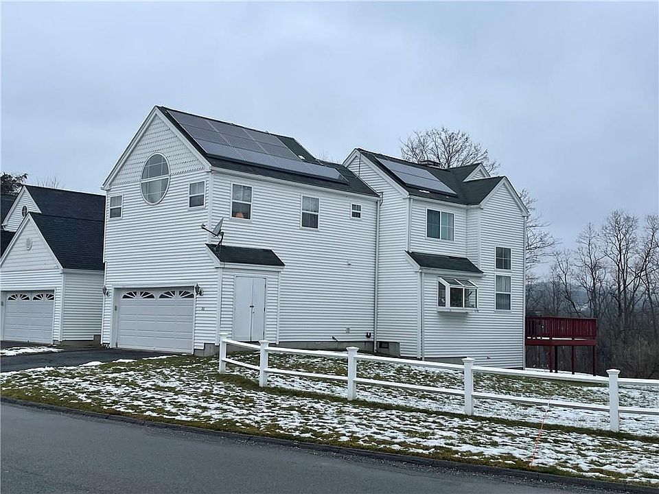 End unit with a Beautiful layout. Living room with vaulted ceilings and wood burning fireplace. Eat in kitchen with Greenhouse window. Second floor loft. Primary bedroom with vaulted ceilings, walk in closet and full bath. Second bedroom with a full bath. Solar panels with 13 years left on a 20 year lease @$85/month. Full unfinished basement. Newer water softener and washing machine. 2 car garage. You can easily just move in to this unit. Home being sold "as is". Additional Information: Amenities:Storage,HeatingFuel:Oil Above Ground,ParkingFeatures:2 Car Attached,