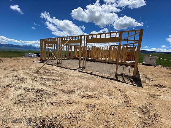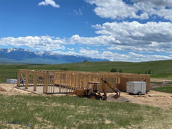 Modern Mountain Chic home has massive views of the Madison Mountains from 2 sliding doors & a large window of this newly under construction custom home. 17'+/- ceiling vault, trimmed out w/ ship lap, adds to open-airy feeling of central living space. 9' walls adds to the expansive feel. East facing Master suite includes a large walk-in closet, 6' x 4' custom tiled walk-in shower, & 8' dual vanity. Add 2 guest bedrooms & a full bath between. Stainless steel GE Appliances, KCD Brooklyn Slate Shaker Style cabinets, butcher block counter tops, walk-in pantry with more cabinets on each side & a large island complete the kitchen. There are 2 covered porches (10' deep x 25' on east side & 6' x 9' on west), a large 3 bay garage (26' x 41'), metal wainscoting & prefinished hardy board on the exterior, metal roof, & some landscaping complete your new home. Access to NFS, Trout stocked lakes & the Madison River are just a short jaunt away. Come create your new lifestyle in Montana!