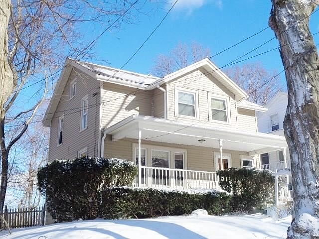 Charming colonial with brand new roof on house & garage and brand new vinyl siding on house & garage in 2020!!! Go ahead and move right in...walking distance to parks and downtown village square! Quaint brick driveway, large covered front porch for evening relaxation and newly remodeled mudroom off rear entrance with new back entrance doors, windows and stairs. Newly painted interior with neutral colors. Formal dining room, entry foyer, Full basement and attic, updated electrical. Nice home centered in the Fredonia Village in an established neighborhood!