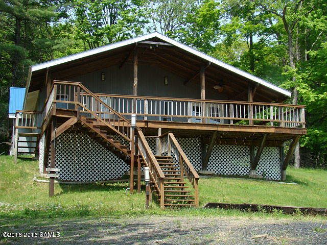 Tucked away on a private road just minutes to Vermont, this chalet overlooks a beaver pond and local mountains. Secluded and private set on 5 acres. Huge front covered porch. Big garage/workshop. Once inside the rooms are spacious and cozy. There is a lovely fireplace and loft over looking the fireplace!