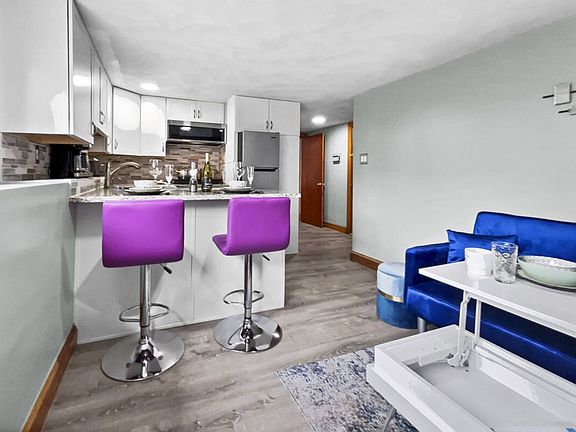 Welcome to the Suite at House of L, a beautifully renovated 1-bedroom apartment located close to Boston. This suite features a modern kitchen with a granite peninsula and an open living space. The light and bright apartment includes a queen-size bedroom and a private bathroom, along with off-street parking for one car. The apartment is situated on the lower level of a home, with ceilings that are 6 feet 10 inches high. As you enter your private apartment, you are greeted by an all-new kitchen and open living space. Rest on the comfy couch or settle into a bar stool at the peninsula. Make your favorite flavored coffee with the Keurig, or perhaps relax with a beverage. Need to get a little work done? Raise the top of the coffee table and voila, you have a great workspace. The kitchen is fully furnished with dining accouterments, including a full-size fridge, microwave, and a 2-burner induction stove top. The apartment offers private off-street parking for one car. For family-friendly homes, a luxury Pack-n-Play or other children's furnishings are available for an additional charge, as availability permits. Boston perfectly blends the historical with the contemporary. Options for entertainment are endless, from historical tours and trails to eclectic theatre and inspirational architecture. Each season brings unique events and specialties enjoyed by locals and travelers alike, such as 1st Night, the Marathon, and Harborfest. Boston is truly a walking city with convenient public transportation, pedicabs, taxis, and bike rentals readily available. The best way to enjoy this compact, friendly city is to take to the streets, walk, explore, and then relax with a beverage. Smoking is strictly prohibited. Guests will be fined and immediately evicted for smoking or vaping in the home or on the property. No parties, events, performing artists, or bands are allowed at any time. These are cause for eviction with no refund. If any damage impacts our ability to offer the home for future guests, you will be held liable. The upper floors of the home are occupied by full-time residents, and for guest and resident safety, the Suite at House of L has exterior cameras recording. The property is cooled with window air conditioning units, installed in May and removed in September. Each unit has both a cooling and fan function, and each room with a window AC unit also has a fan. The living room features a convertible coffee table that raises to be a desk or table, providing a convenient workspace. Free high-speed Wi-Fi is available to meet the needs of guests traveling for both work and pleasure.