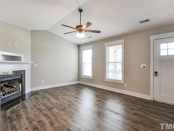 Built-in 2017, this Clayton one-story home offers a porch, a fireplace, granite kitchen countertops, stainless steel kitchen appliances, master bath step-in shower, master bedroom walk-in closet, and a two-car garage.
