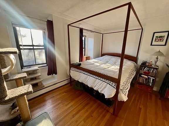 One bedroom plus office space. Entire top floor one bedroom apartment in professionally managed building located in the much desired 8 streets section of the South End. Excellent restaurants, coffee shops, parks, theatre & arts on a beautiful side street. Front-facing living room with sky line views. Open layout with recently renovated granite/stainless kitchen with dishwasher and room for small table, tiled bath with tub, one larger bedroom and one smaller bedroom or office (large enough for full sized mattress). Common laundry. Cats allowed; no dogs. Heat & hot water included. One Month Broker Fee. Available September 1. Heat and hot water are included. Renter pays for electricity and internet. First month and last month's rent due if application is accepted. One month broker fee due at lease signing. Cats ok. No dogs please.