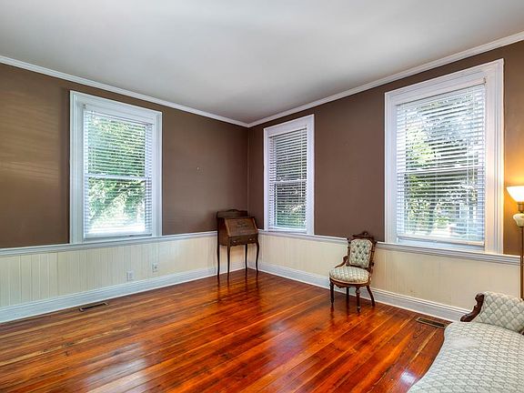 Beautifully renovated 3 bedroom, 2 bath home in the Historic area has all the charm of an older home with modern upgrades. Lovely heart pine floors add warmth and character throughout, along with the deep front porch, wide entry foyer, and double-sided fireplace between the living and dining rooms. The large eat-in Kitchen features newer lighted cabinets, countertops, and appliances, and an island kitchen table. A beautiful Sunroom across the back side of the home features a gas fireplace & floor-to-ceiling windows to enjoy the private backyard's many flower beds. There is also a screened porch.
