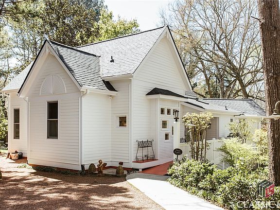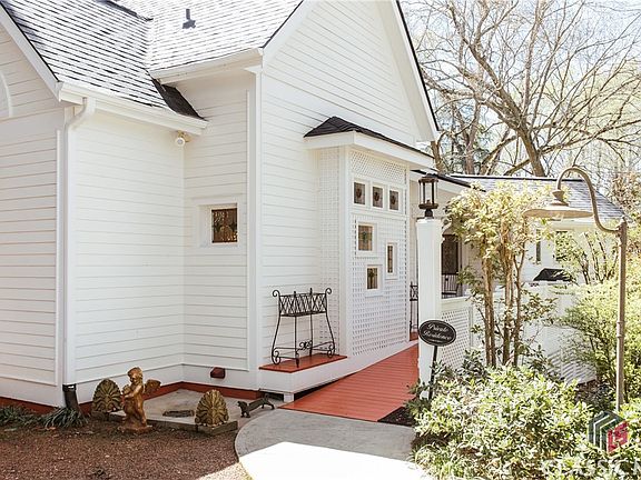 There is none other like this modern cottage with Old World charm in the heart of Historic Downtown Watkinsville! Inspired by 1890s Victorian cottage architecture, this home provides all the modern conveniences with high end finishes. Features include soaring 12 foot ceilings, vintage touches throughout, new luxury carpet in main bedroom, elegant touches in kitchen, casement windows throughout, all new paint inside and out, new architectural shingle roof March 2023. The entry and primary bedroom boast antique restored lighting from a 1910 bank in Chicago. Vintage French chandeliers hang in the kitchen and are complimented by a restored antique chandelier in the dining room. The primary bedroom suite boasts large windows overlooking the wooded rear yard, new carpet, a great walk-in closet with laundry closet inside, a spacious luxury bathroom with vintage stain glass windows. The porches, both fully screened and open, feature Chippendale accents and are divided by a barn door sliding screen. The guest suite is Terrace level and is accessed by a spiral staircase inside the house as well as from the sliding door on the terrace patio. Guest suite features include slate tile floors and a grotto style bath suite, which has a rain shower, jetted tub, custom art inlays in the floor and walls, and all brick walls. One of the most impressive features of this property is the mature low maintenance landscaping. When designed by Jim Shearon along with architect Van Strickland and built by Smith Wilson, the homesite was chosen to accommodate and enhance the already existing foliage. With magnolias that are over 50 years old, large Japanese maples that are also in their prime, and many other plantings, you will feel like you are in a treehouse surrounded by ever-changing colors and hues. In all, every part of this property has been meticulously thought out from inception to construction to maintenance. It will be so easy to move in and just breathe. Then head downtown for dinner and dessert. The Watkinsville world is your oyster.