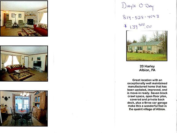 This 1352 square foot single family home has 3 bedrooms and 2.0 bathrooms. This home is located at 20 Harley Ave, Albion, PA 16401.