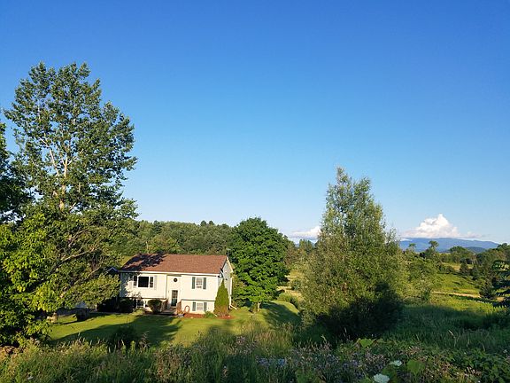 Well-maintained 3 bedroom, 2 full bath raised ranch. Open concept kitchen, dining, living rooms with vaulted ceiling, large tiled mudroom off oversized 2 car garage. Large deck overlooking very private yard, adjacent to expansive pastures, with mature trees and shrubbery, berry bushes, raised garden beds and stunning views of Mt. Mansfield. $10k back at closing for new carpeting and updated oven and fridge (current appliances are in working order).