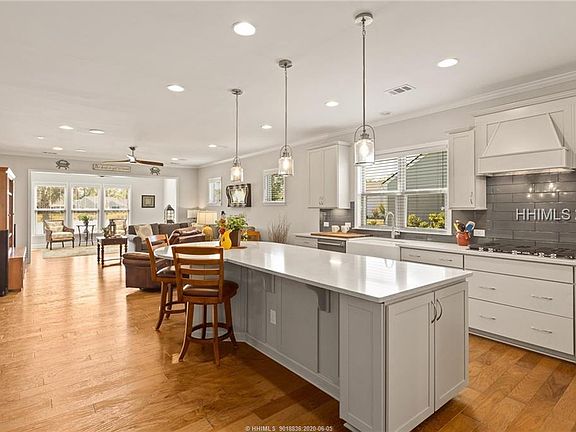THE HAVEN: Beaufort Cty LOW TAXES. Details prevail in this HIGHLY UPGRADED 2Bed/2Ba/Den/Carolina Rm MARTIN RAY w/FENCED yard & picturesque LAGOON VIEWS. WOW! STORAGE GALORE w/ease of a WALK-UP ATTIC. ELEGANT Gourmet Kitchen boasting quartz counters, lg circular breakfast bar, S/S KITCHEN-AID appl's w/5-burner GAS cooktop, Butler Pantry & CUSTOM walk-in Pantry. Wood Flrs. SPACIOUS Great Rm & Carolina Rm perfect for ENTERTAINING. Owner Ste w/tray ceiling, lagoon views, quartz, INCREDIBLE CUSTOM W/I CLOSET & W/I super shower. CUSTOM Laundry. Den can serve as 3rd Bed. RINNAI! 4' ext'd width in garage AND driveway