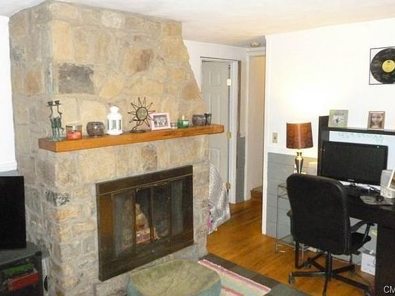 CUTE LITTLE STARTER HOME IN IDEAL LOCATION FOR DOWN COUNTY COMMUTING. NEEDS SOME TLC AND UPDATING TO MAKE IT YOUR OWN. LIVING ROOM FEATURES A STONE FIREPLACE AND SLIDERS TO SIDE DECK AND LEVEL SIDE YARD. BASEMENT HAS BARN STYLE GARAGE DOORS. OIL HOT WATER HEAT W/330 GALLON OIL TANK IN BASEMENT. BEING SOLD AS-IS.