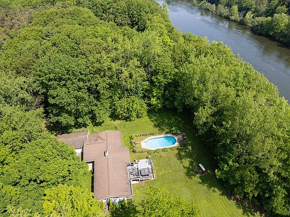 SELLER IS REQUESTING BEST AND FINAL OFFERS FROM ALL PARTIES BY TUESDAY 7/1/25 at NOON. Incredible opportunity to own a beautiful 4 bedroom, 3 full bathroom, 2,471 sq ft waterfront ranch home, situated phenomenally on a scenic 1.81 acre lot along the Oswego River, with plenty of seclusion and privacy. Home is set at dead end of Hickory Grove Rd Spur, featuring heated in-ground pool and deck with hot tub, overlooking your own back yard oasis. Dock and boat hoist at water allow you to enjoy boating throughout the season, without having to pull your boat in and out with a trailer after each excursion, giving you more time to enjoy the water. Formal dining room sits open to spacious living room centered on gas fireplace, with wall of windows in both living room and dining room, showcasing the beautiful setting and view of the Oswego River. Patio door from dining room leads to beautiful tiered back deck with new composite decking on lower tier (brand new composite decking delivered for upper tier, which Seller will leave for Buyer). Primary suite with tastefully remodeled primary bedroom bathroom. Kitchen offers plenty of cabinet and counter space, plus eat-in area. 5 garage spaces, including 3 garage spaces at driveway level, plus additional 2 spaces around back of home, provide all the space you need to keep from brushing snow off your cars in the winter mornings, plus plenty of additional room for storage of tools and equipment. Outstanding sizable laundry room with sink, doubles as mudroom/entry from garage. Possibility of 5th bedroom if desired or needed, with room currently used as an office. Full walk-out basement with wood burning fireplace gives potential to finish into additional living space. Location makes for very manageable commute to Syracuse or Oswego. Short drive to all the conveniences of the Town of Clay as well. Don't miss out on this opportunity to own a beautiful ranch home so magnificently and uniquely set along the Oswego River. Seller is requesting best and final offers from all parties by Tuesday 7/1/25 at noon.