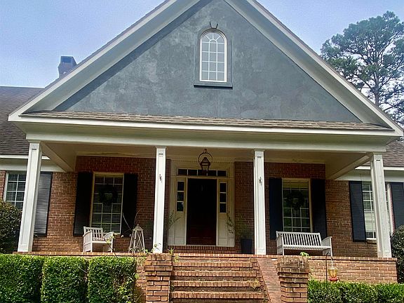 Welcome to your dream home - Charm greets you at every turn! Hardwood floors, tall ceilings with beautiful crown moldings, and gracious living spaces create an inviting atmosphere. The main level boasts an oversized primary bedroom with a luxurious bathroom, and two stunningly walk-in closets. Off the primary is a private lofted area - perfect for an office, crafting room, or reading nook. Also on the first level, there are guest accommodations, with a private bath. The kitchen is a chef's paradise, featuring counterspace galore and double ovens. Entertain a crowd by utilizing the dining area, breakfast area, and adjacent oversized den. If more privacy is what you need, a formal living room is just inside the front door. In the foyer, take the beautiful staircase to the second level; here you will find three more bedrooms, one with a sitting area, and each with their own bath and large closet. Exiting from the den, French doors lead you to the extensive back porch, overlooking the pool —a true oasis for relaxation. Situated on a corner lot totaling 3/4 of an acre, your dream home is near the golf course, city lake, YMCA, ball parks, playground, and splash pad. Seller is willing to do a credit towards the price of a new roof. Make this one yours - reach out to your favorite Realtor today. Buyer to verify all information during due diligence.