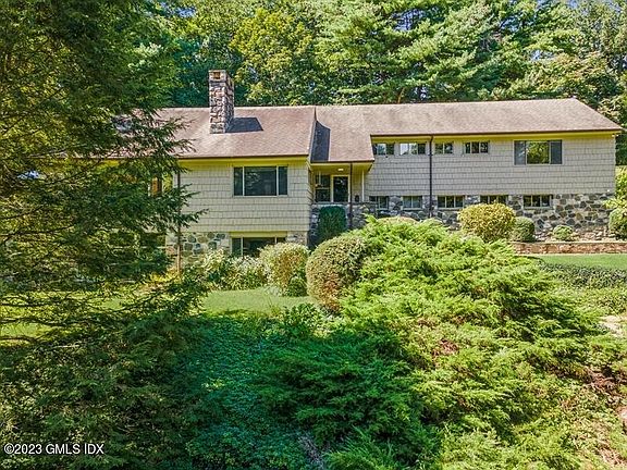 Rare mid-country mid-century home on 2.8 acre rolling lot with beautifully landscaped grounds, mature trees, and stone walls. Dwelling is a 8 bedroom split-level home designed and built by local architect, Carl Braun. With its mid-century asthetic, the house is reminiscent of the organic architecture most notably attributed to Frank Lloyd Wright. The sloping terrain allows for 5 multiple levels with an additional 800+/- sq. ft in finished lowest level. Perched high on the hill in a private setting are the swimming pool, detached 3 car garage and tennis court. Whether renovating or redesigning, 20 Hill offers a unique opportunity to create something very special in one of Greenwich's most desirable locations. Sold as-is.