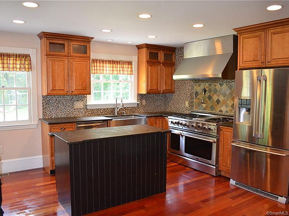 A rare find-Scenic level riverfront cul de sac lot. The kitchen is extraordinary - high-end stainless appliances include professional gas stove, farmhouse sink; island; textured granite, tile back splash, hutch; adjacent walk-in pantry & separate butler's pantry w/2nd sink & refrigerator. Dream kitchen opens to Beaut. DR, ideal for family/friends to gather. Huge versatile ML FR w/FPL. Private ML office; Screened porch. Brazilian cherry & oak floors throughout. Newer powder rm & MBR bath. French doors. Over-sized BRs, adjacent large laundry rm could provide room for an additional UL bath. ML mudroom/sun room. OHA & Central A/C. Extensive rear blue stone patios. So many upgrades & improvements already complete. Great investment & opportunity.