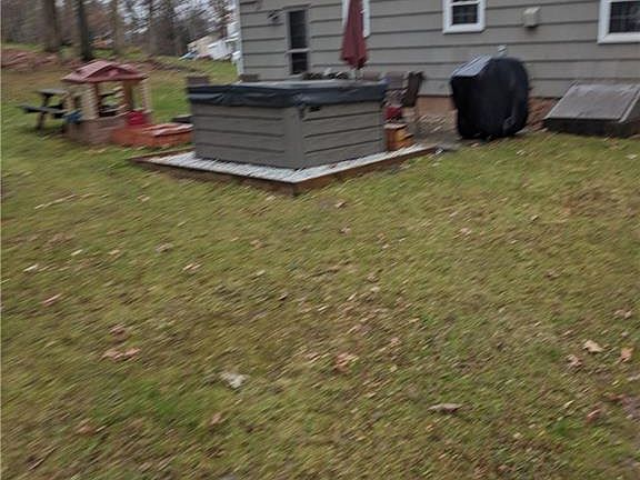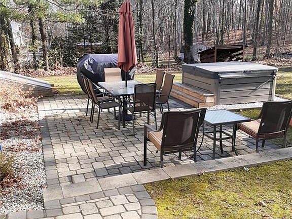 Sunny and bright home on cul-de-sac! 1.43 acres with lovely yard backed to woods. Remodeled kitchen and bath! Fireplaced living room and formal dining room. Hardwood flooring! Central air! Master bedroom with private bathroom and 12' of closet space! Patio, 2 sheds and a nice fire pit. Hot tub is only 2 years old. Newer windows, exterior recently painted and driveway resealed.